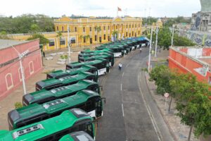 “¡Empezamos a cambiar la flota del Transporte Público Colectivo en Barranquilla, buses con aire acondicionado! Entregamos los primeros 42 buses, de los 100 que tendremos en operación este año. Vehículos modernos, con tecnología diésel Euro 6, que brindarán una experiencia de calidad a más de 12.000 usuarios que a diario transitan por nuestra ciudad. Con una inversión de más de 60.000 millones de pesos.